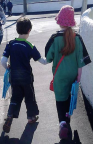 - Each of the kids has a plastic fold-up step (22cm high) which means we can stand near the back under cover. I think we got them* in Woodies in the Wellpark centre.
